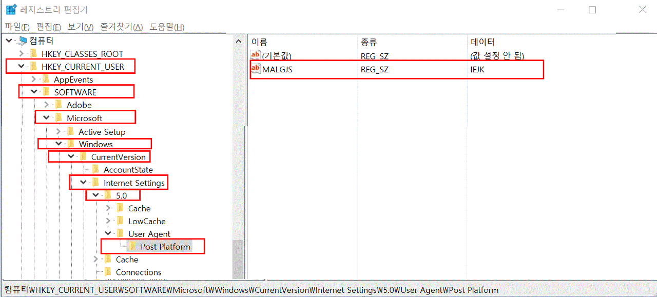 \HKEY_CURRENT_USER\Software\Microsoft\Windows\CurrentVersion\Internet Settings\5.0\User Agent\Post Platform