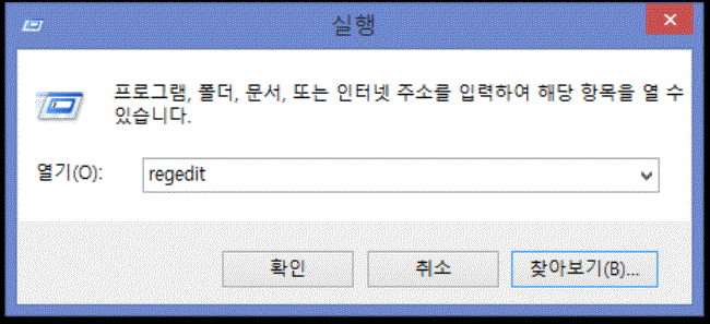 일부 제조사의 노트북(PC)에서 나타나는 현상으로 레지스트리 편집기를 실행하여