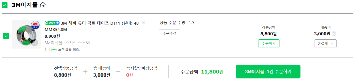 4. 면 테이프(덕트 테이프) : 14~15m - 11,800원