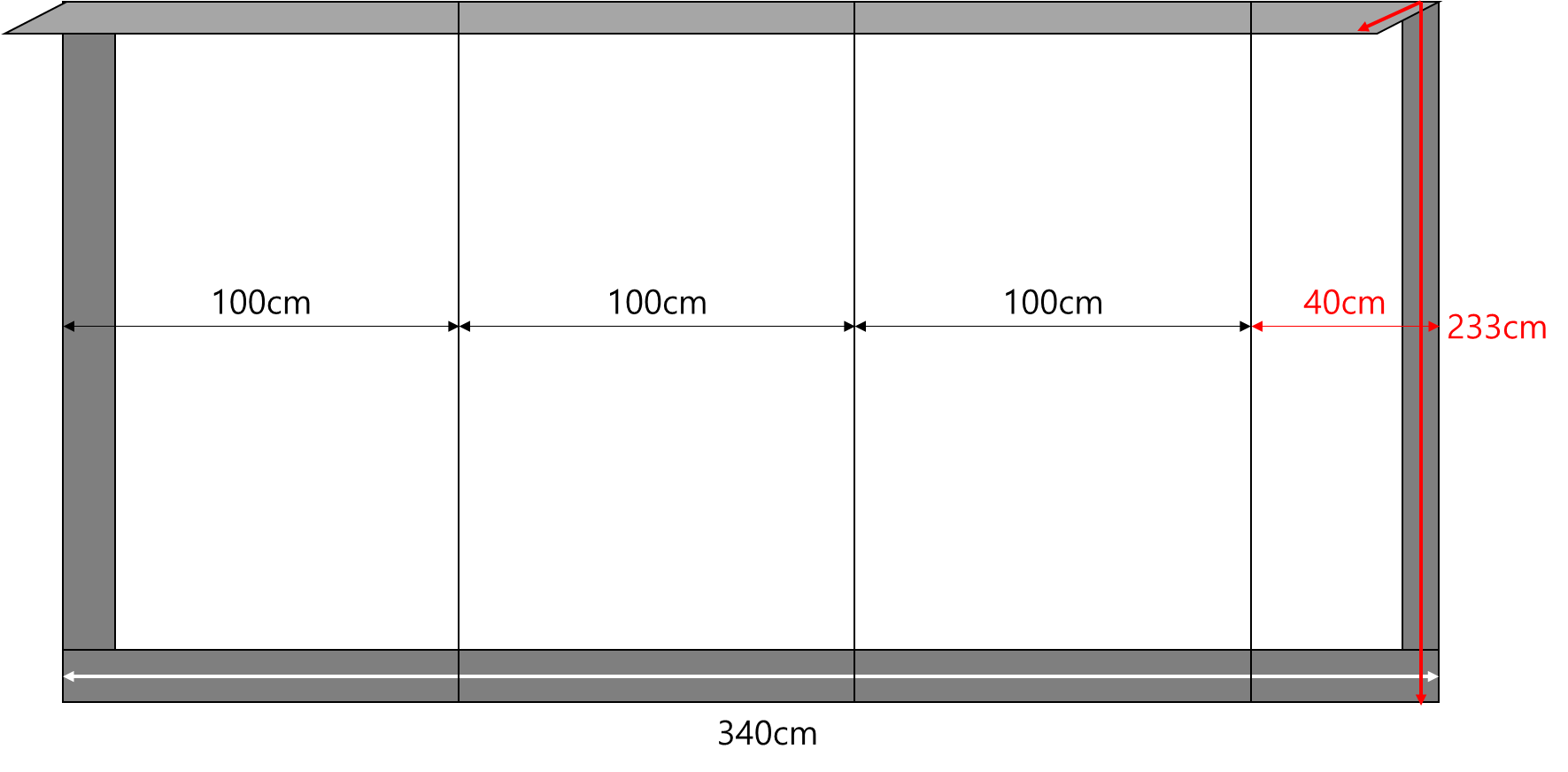 전체 가로 길이를 100cm(1m) 단위로 나누어서