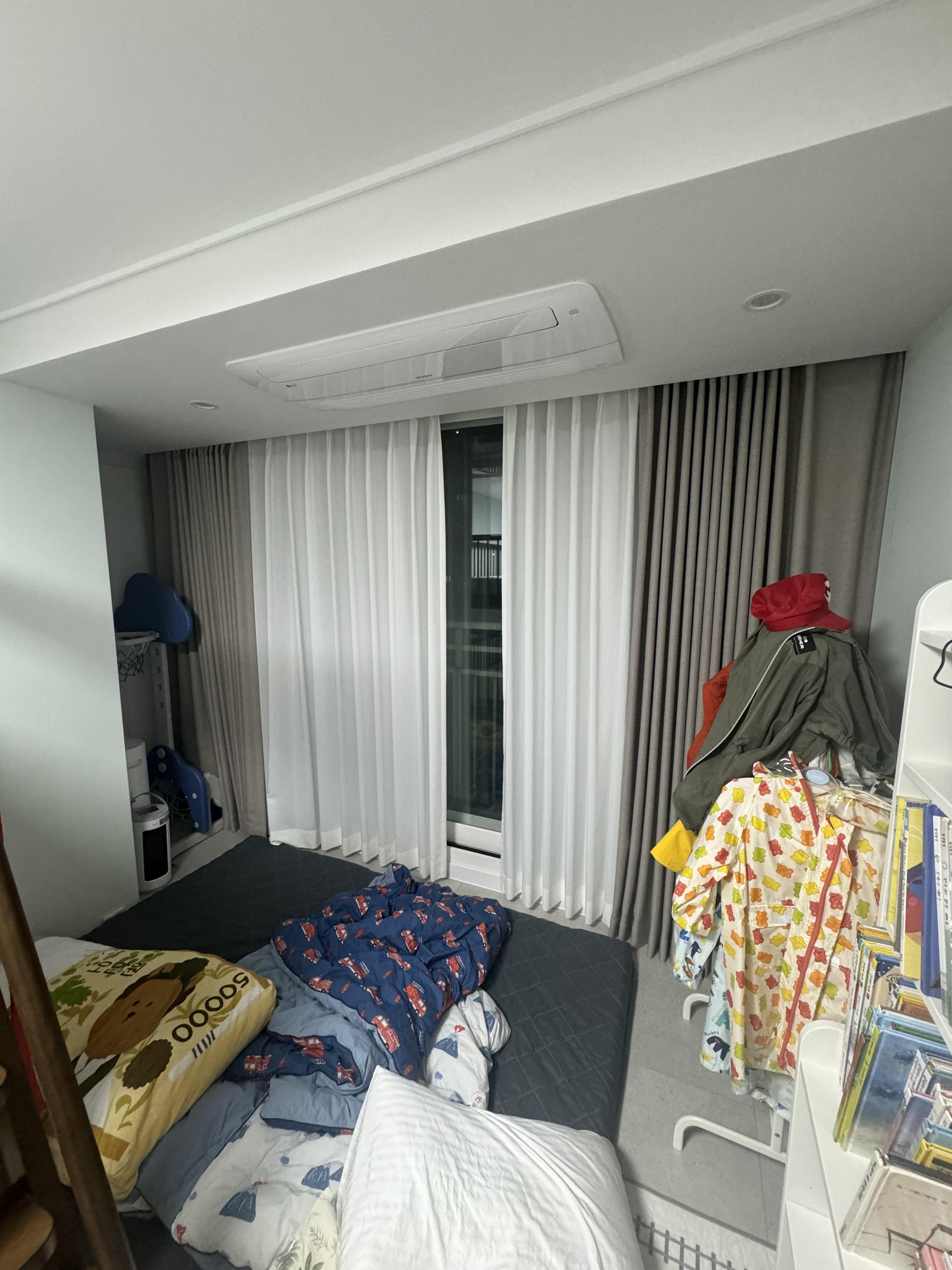 커튼 레일이 붙어 있는 천정에