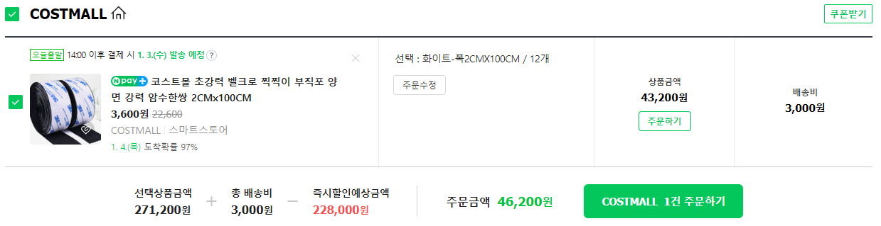 3. 밸크로 테이프 : 5cm 이하 x 12m - 46,200원