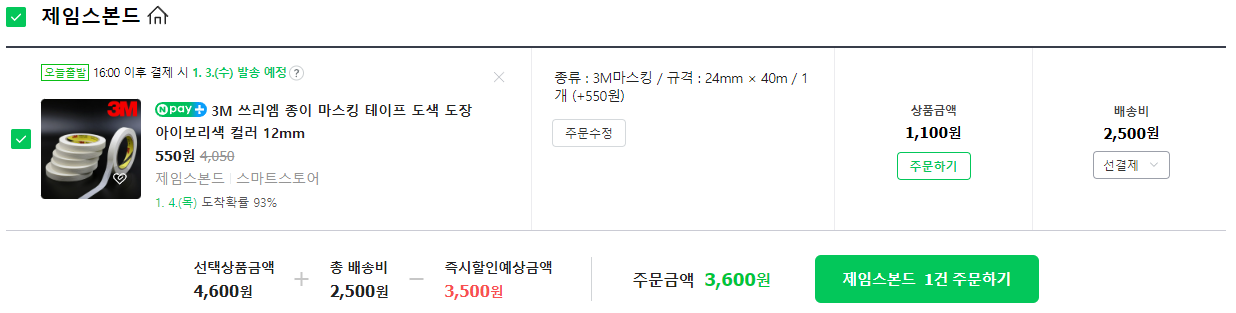 2. 마스킹 테이프 : 5cm 이하 x 12m - 3,600원