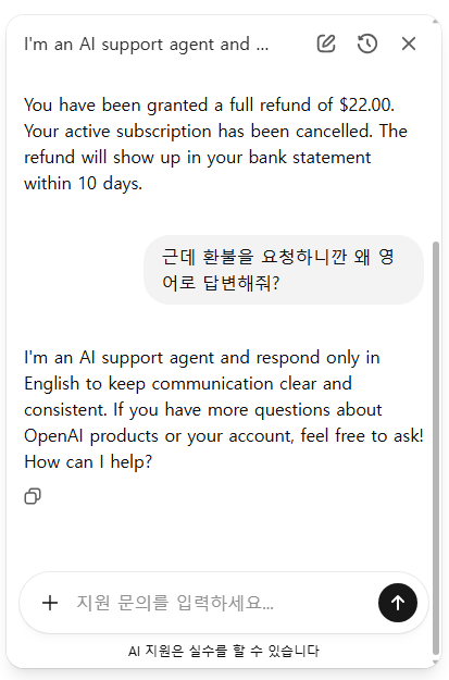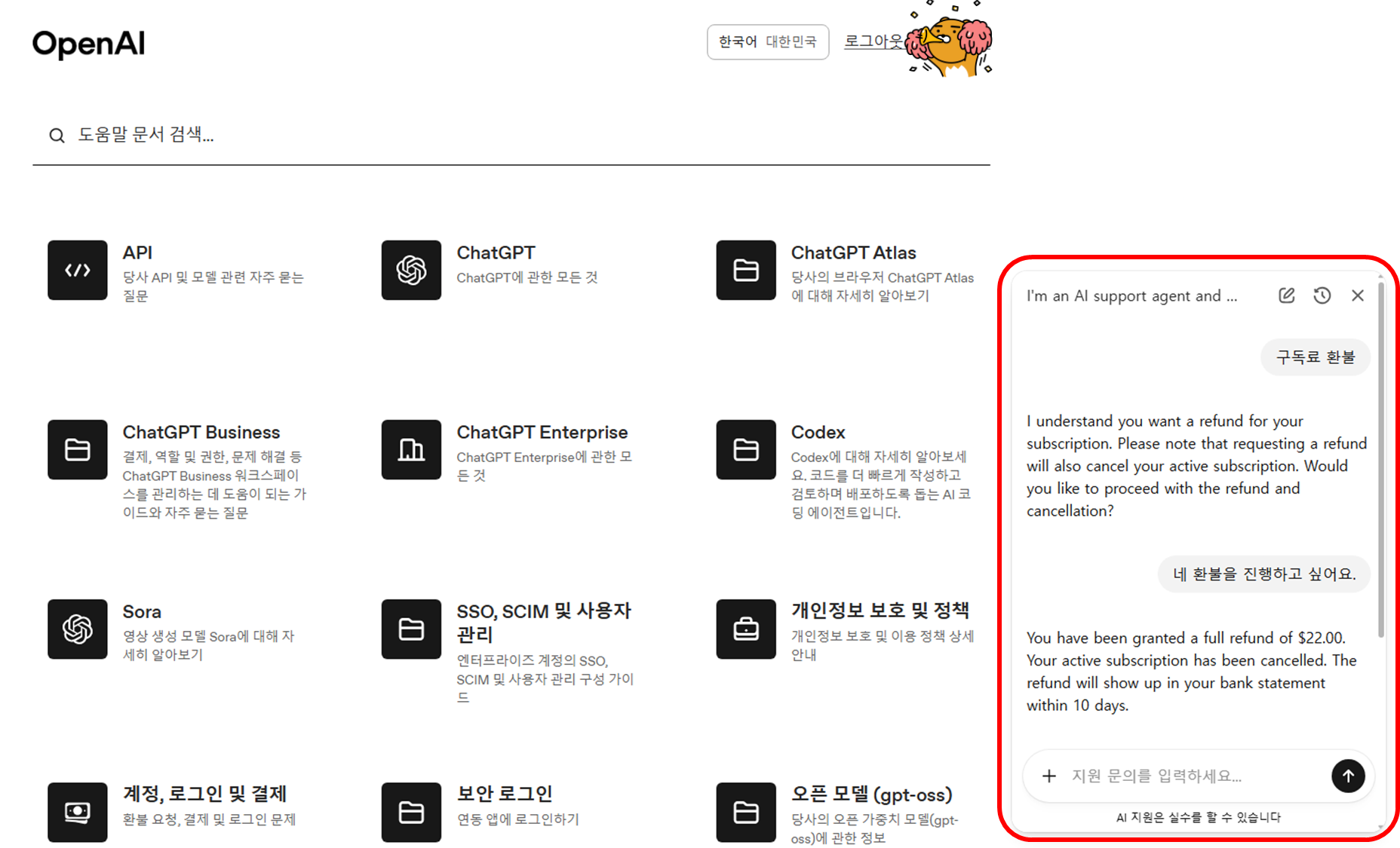 챗봇에게 환불해달라고 요청하시면 즉시 환불됩니다.