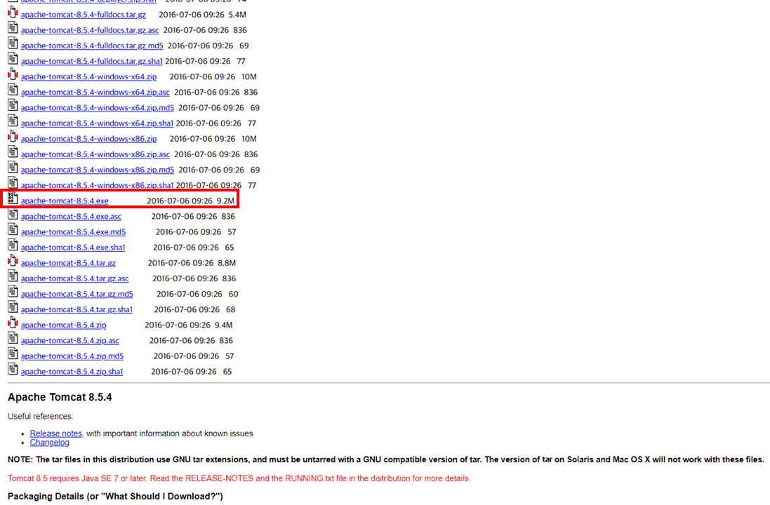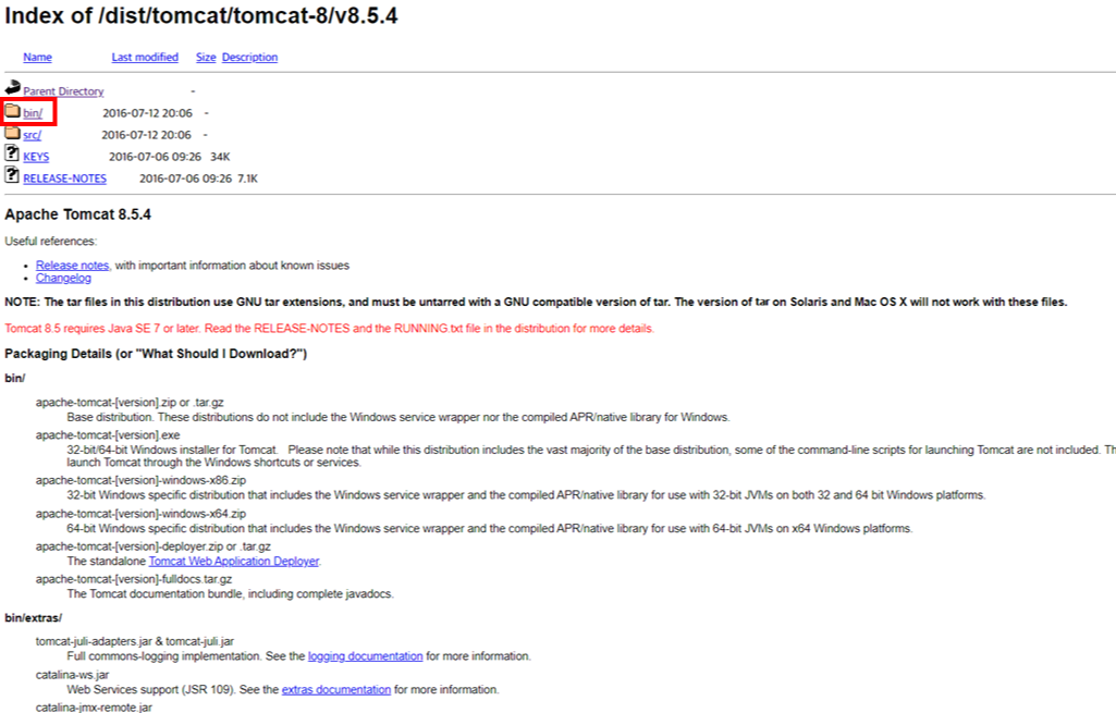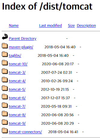 설치하고자 하는 Tomcat 버전을 선택하면 다음과 같은 디렉터리 페이지가 나옵니다.