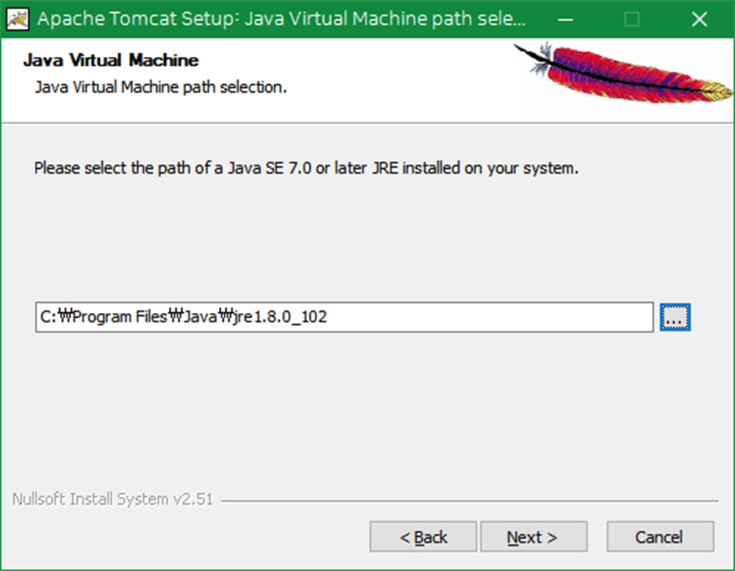 원하는 JRE 버전으로 경로 설정 후 "Next >" 클릭