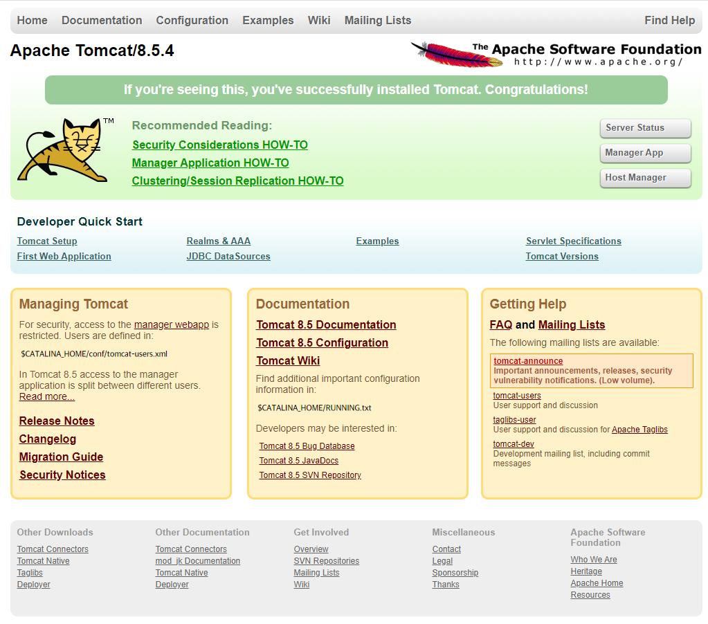 다시 홈페이지 서버에 접속하여 정확한 Tomcat 버전을 확인합니다.