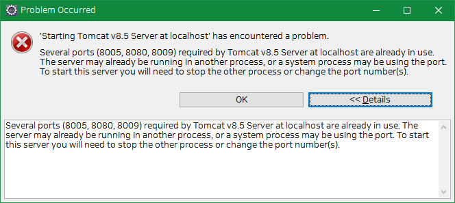 포트 충돌이 일어났습니다.