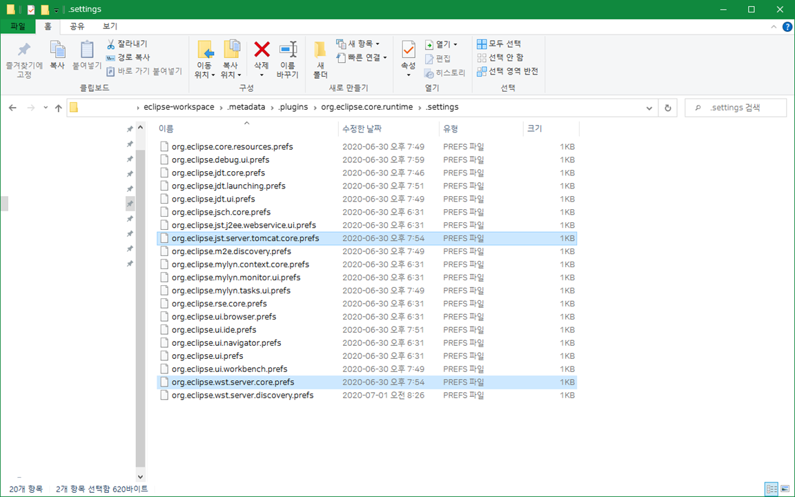 삭제 파일 1 : org.eclipse.jst.server.tomcat.core.prefs
