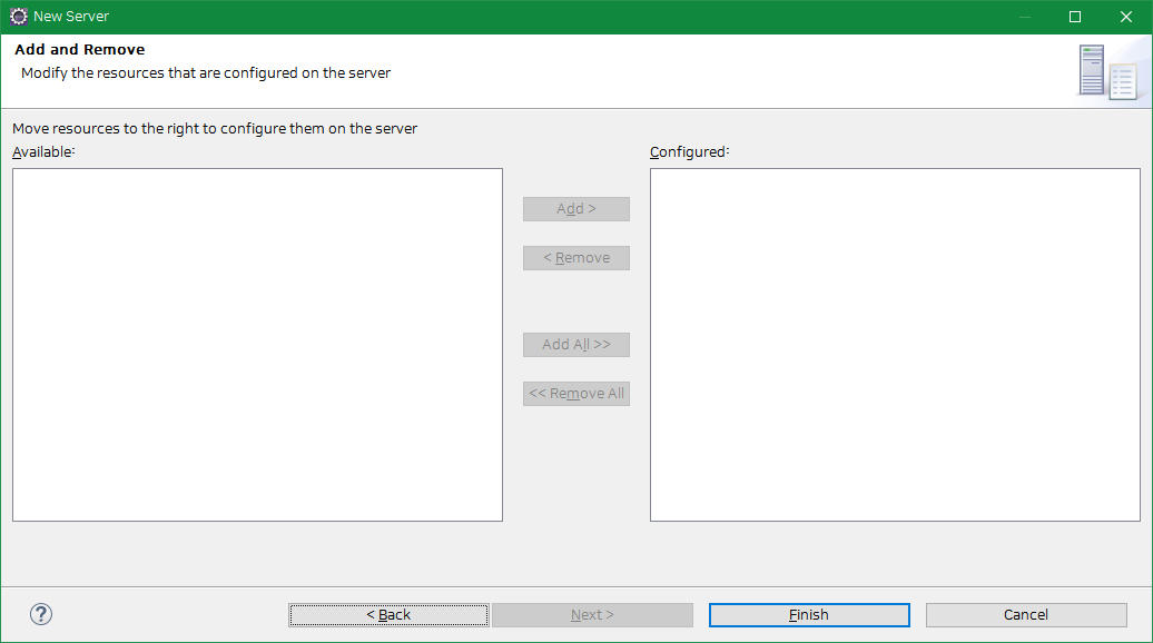 그럼 일단 서버 추가를 Finish 한 이후에
