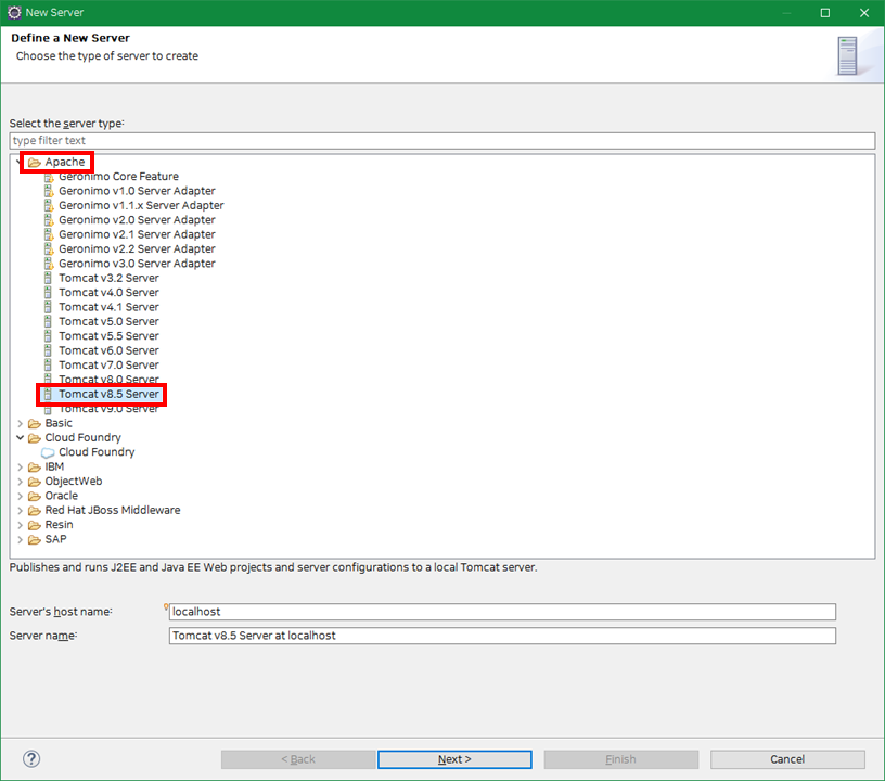 ② New Server - Apache > Tomcat v"설치버전" Server 선택 후 "Next >" 클릭