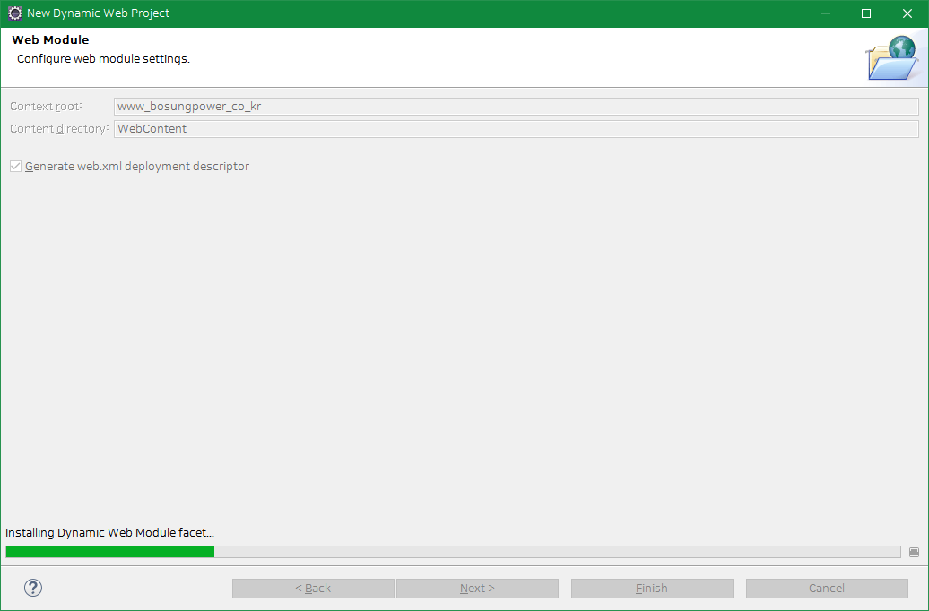 "Generate web.xml deployment description" 에 체크 해준 후 "Finish" 클릭