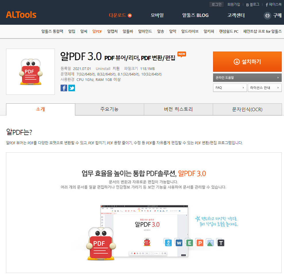 우선, 알PDF 뷰어를 다운로드합니다.