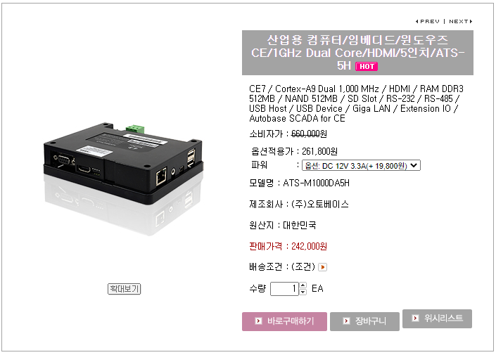 산업용 WinCE PC를 찾던 중 Autobase라는 회사의 ATS-5H를 찾게 되었습니다.