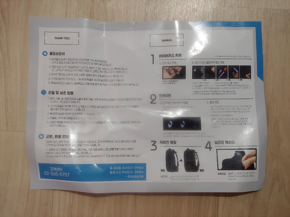 4. 가방 속에 밝기 조절이 가능한 충전식 LED이 있음